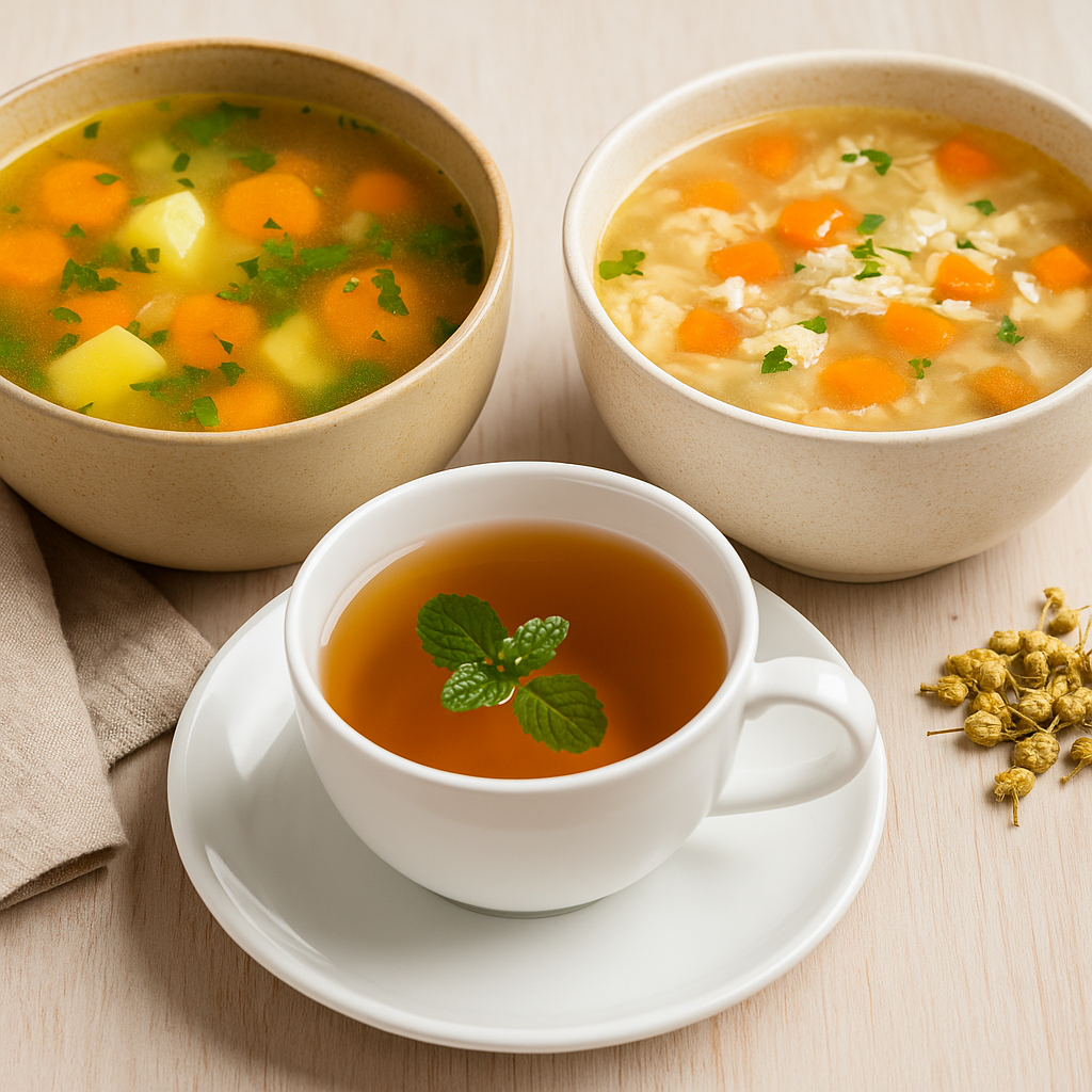 32. Sopa de verduras – Facilita la digestión y repone electrolitos.