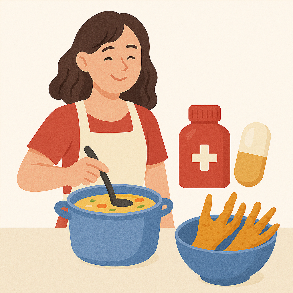 El colágeno y la gelatina de las patas de pollo protegen la mucosa intestinal, reduciendo problemas como gastritis, acidez o síndrome de intestino irritable.