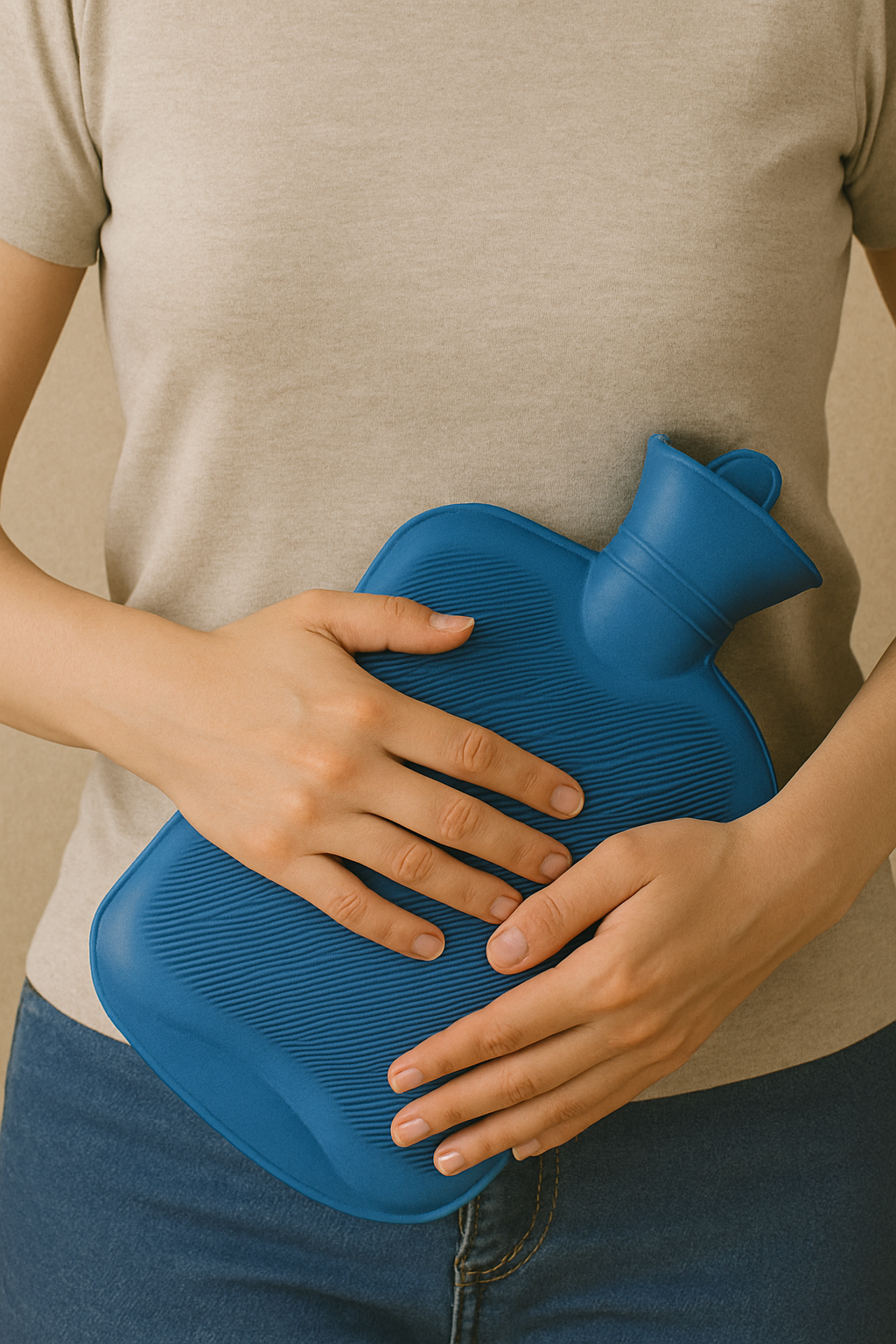 Una técnica simple pero efectiva es aplicar calor en la zona del estómago para aliviar espasmos y tensión muscular.