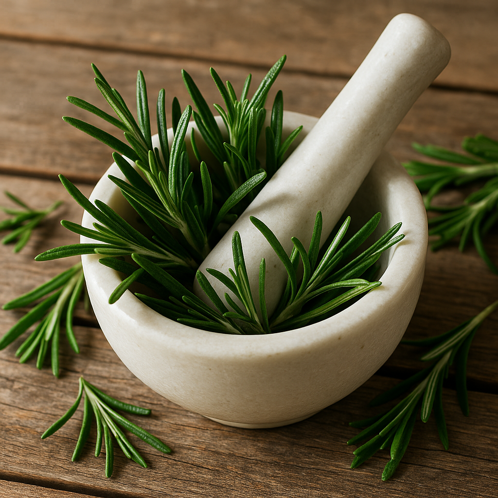 El aceite esencial de romero, utilizado en difusores, crea un ambiente relajante y revitalizante.
